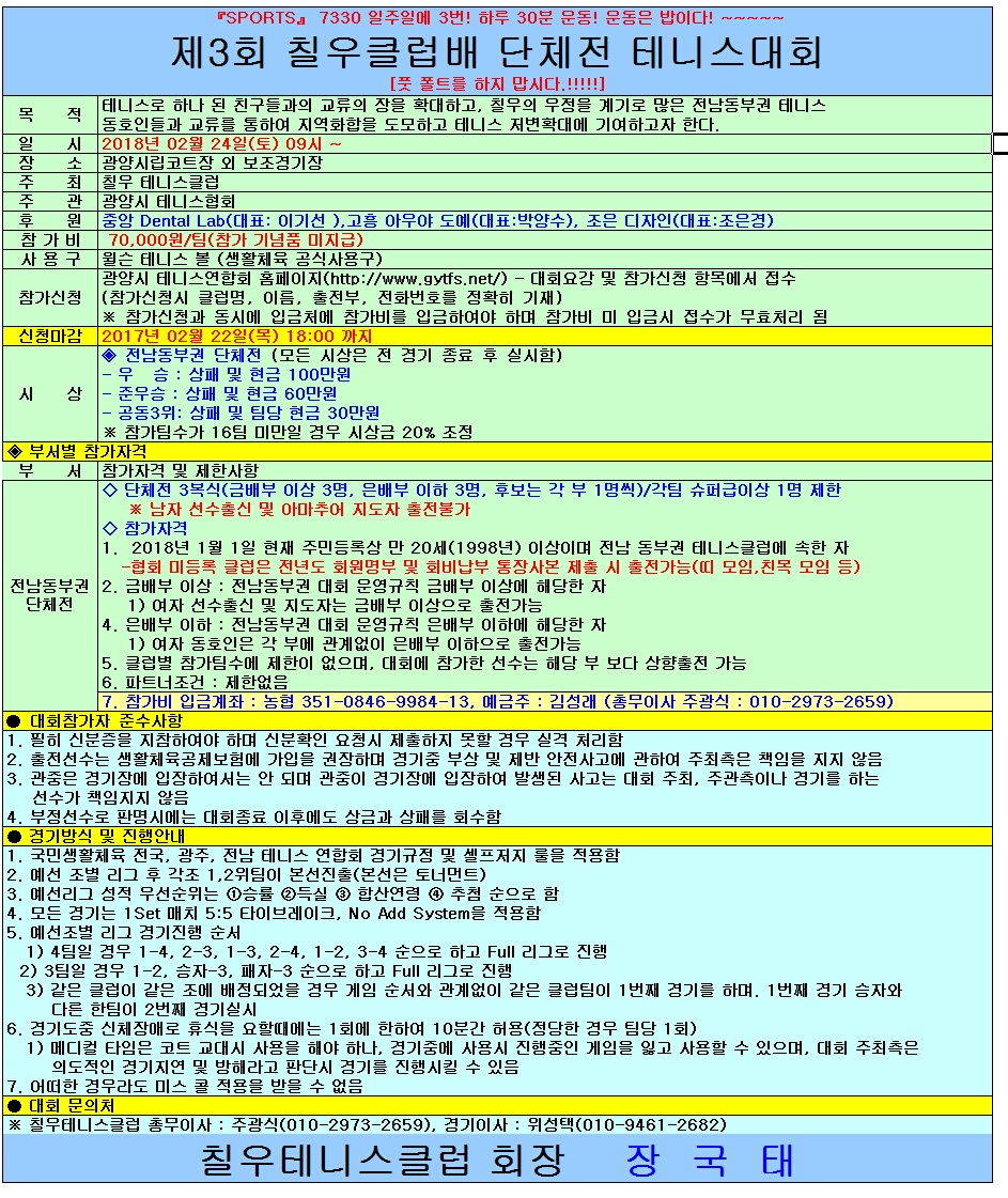 Á¦3ȸ Ä¥¿ìŬ·´¹è ´ÜüÀü Å״Ͻº´ëȸ