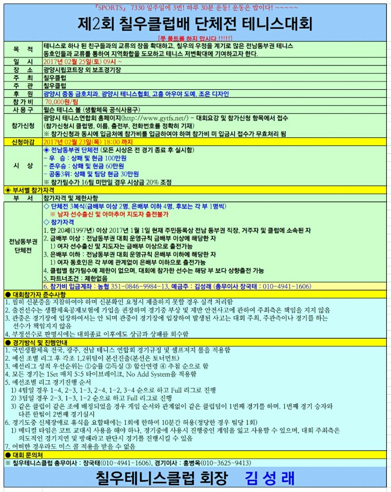 Á¦2ȸ Ä¥¿ìŬ·´¹è ´ÜüÀü Å״Ͻº´ëȸ ¾È³»ÀÔ´Ï´Ù.