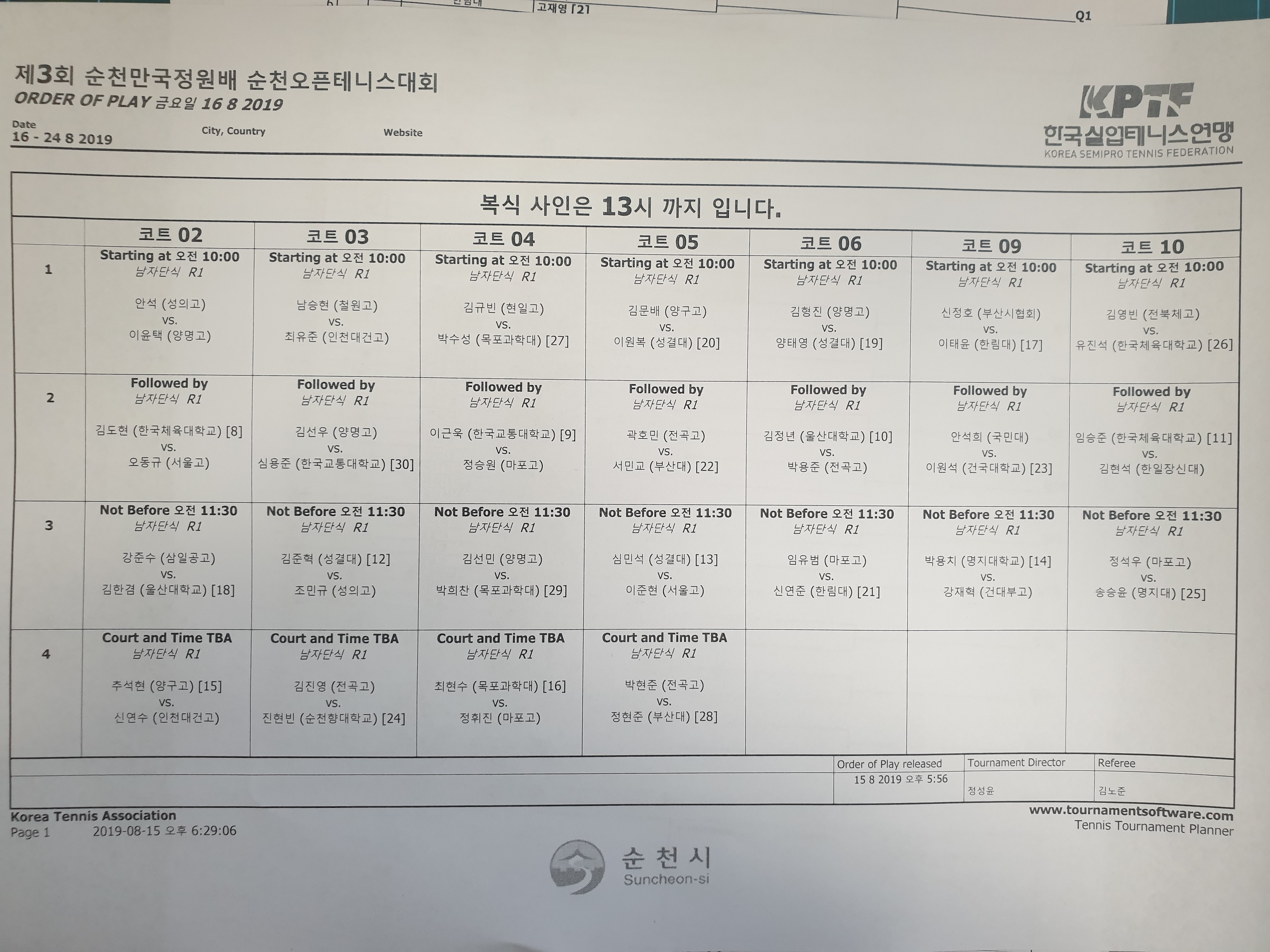 2019 ¼øÃµ¿ÀÇ °æ±âÀÏÁ¤(8/16,±Ý)